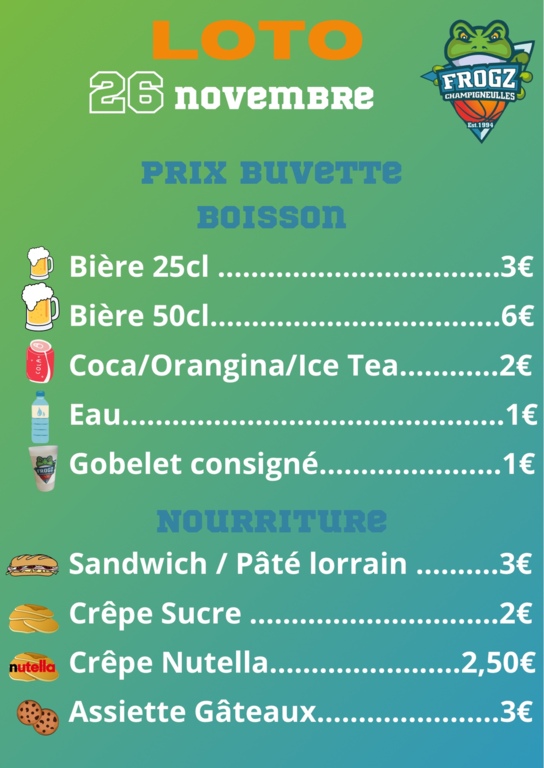 Le loto approche à grand pas (J-2) et pour vous préparer au mieux, nous vous présentons ce que vous pourrez retrouver le jour-j! 🍻🧃🥪